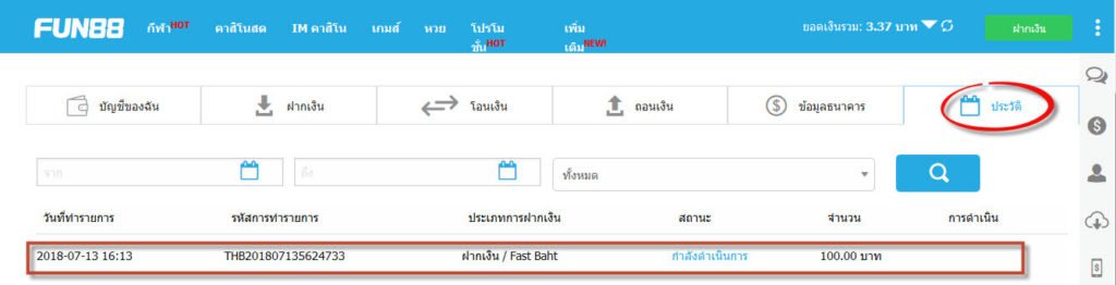 ขั้นตอนการฝาก Fast Baht - fun88thaofficial.com