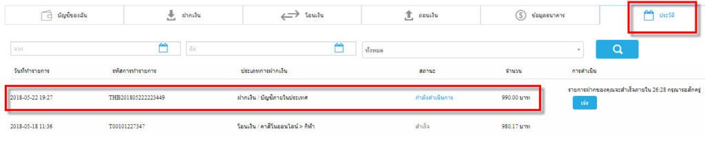 6.สมาชิกสามารถตรวจสอบสถานะการฝากเงินได้ที่หัวข้อ “ประวัติ”